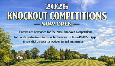 Entries are now open for the 2026 Knockout competitions, including the Captain's Knockout, Fourball Knockout, Foursomes Knockout, and the Veterans Knockout.